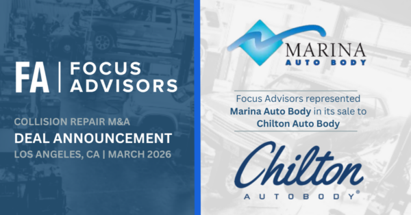 Cherry Hill, NJ – March 31, 2026 – Focus Advisors, the leading M&A firm in collision repair with deep expertise across the automotive aftermarket, announced it was the exclusive advisor to Cherry Collision in the sale of its three-location collision repair platform to VIVE Collision. Founded on the acquisition of Steve’s Auto Body in Cherry … Read more